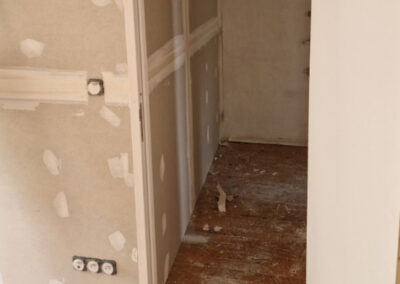 Plâtrerie et isolation intérieure : doublage des murs sur ossature métallique, création de nouvelles cloisons.